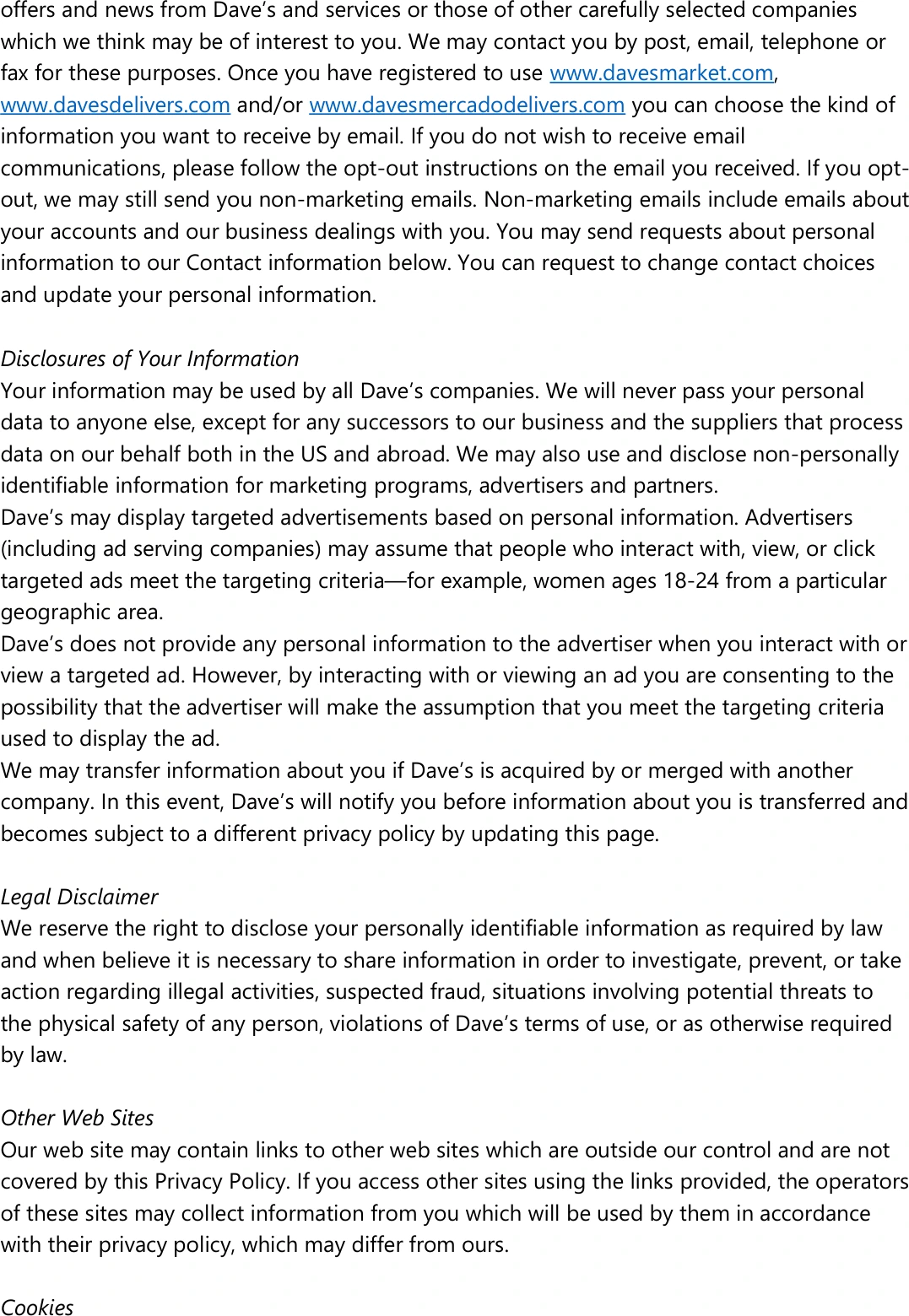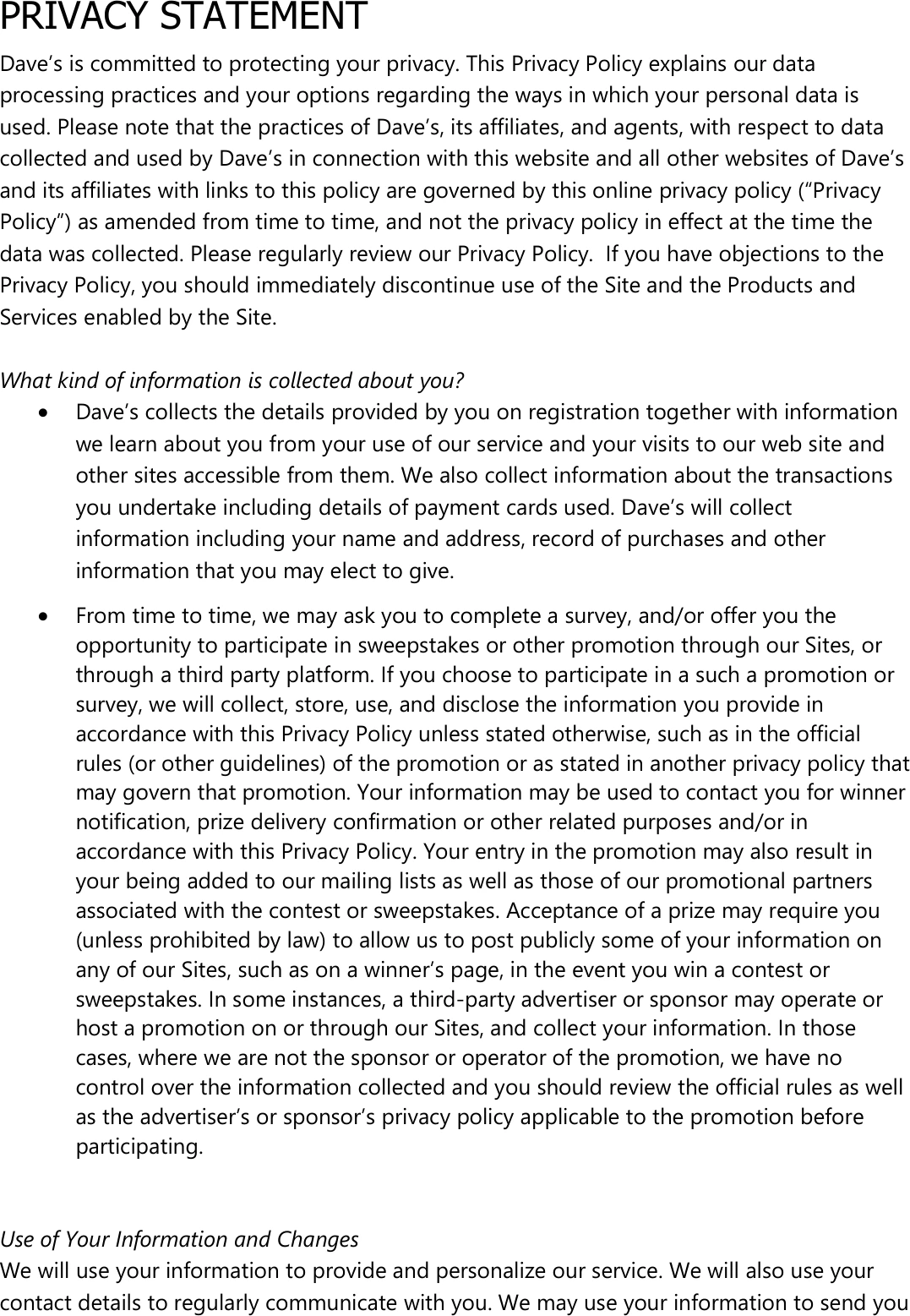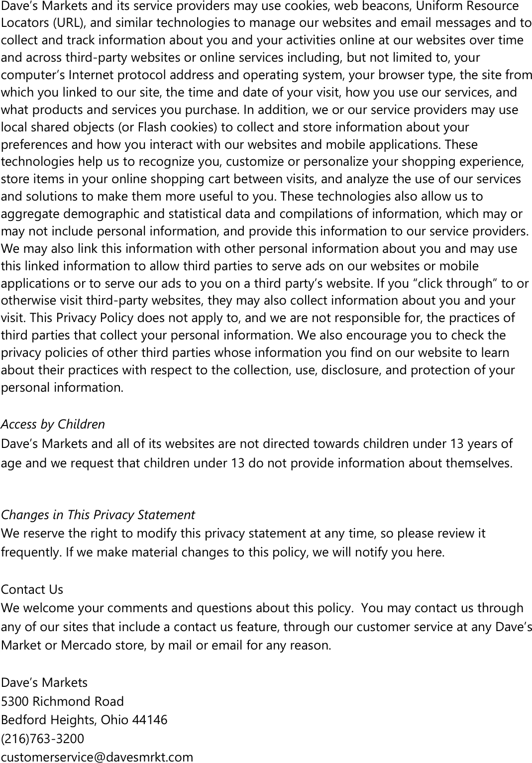Dave's Markets - Privacy Statement - Apr 20 - 26, 2026
