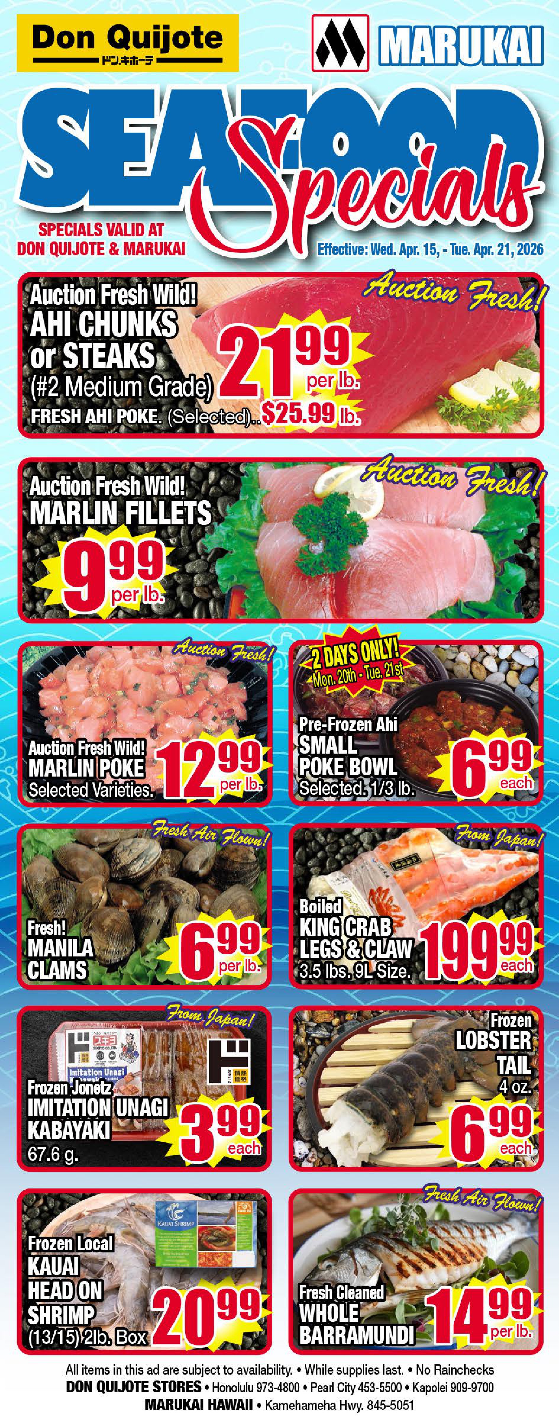 Don Quijote Hawaii - Seafood Flyer Wed, Apr 15, 2026 - Tue, Apr 21, 2026 - Apr 8 - 28, 2026